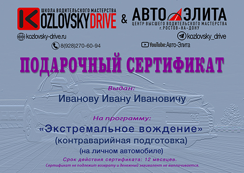 Празднично оформленный именной подарочный сертификат установленного образца (см. ниже) можете забрать в офисе по адресу: г. Ростов-на-Дону, пр. Соколова 53/182, офис 606, также возможна его доставка.